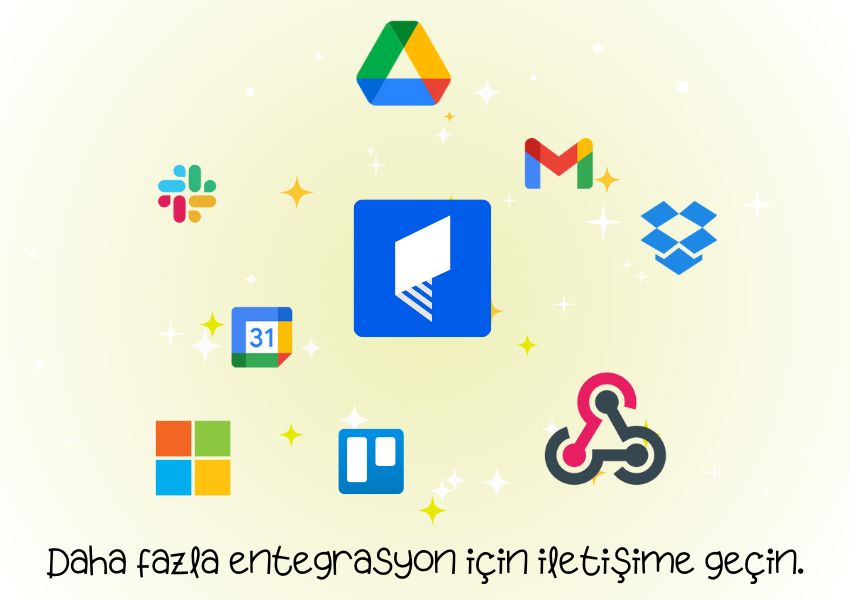 Cubicl, iş süreçlerinizi basitleştirmek ve verimliliğinizi artırmak için Google Drive, Trello ve Slack gibi popüler platformlarla entegre olur. Google Drive ve Dropbox'tan görevlere dosya ekleyebilir ve gelen e-postalardan otomatik görevler oluşturabilirsiniz. Görevlerinizi Google Takvim entegrasyonu ile senkronize edebilir ve her iki platformda yapılan değişiklikleri anında güncelleyebilirsiniz. Slack entegrasyonu sayesinde proje aktivitelerini Slack kanalınıza bildirim olarak alabilir ve Trello kartlarınızı kolayca Cubicl projelerinize aktarabilirsiniz. Ayrıca, Cubicl API ve webhooks ile süreçlerinizi otomatikleştirebilir ve diğer yazılımlarınızla entegre edebilirsiniz.