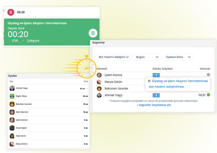 Bir proje yönetimi aracı olan Cubicl'ın zaman sayacı özelliği sayesinde ekibinizin projelere harcadığı süreyi etkili bir biçimde izleyebilirsiniz. Her görev için geçirilen süreyi ölçerek detaylı raporlar oluşturabilir, bu sayede kaynakları daha verimli kullanabilirsiniz. Zaman sayacı aktif olduğunda, proje yöneticileri ekibin hangi görevler üzerinde çalıştığını anlık olarak görebilir. Bu şeffaflık, iş süreçlerinizi optimize etmenize ve proje ilerlemesini daha iyi yönetmenize yardımcı olur. Ayrıca, bu araç proje takibi sistemine entegre olduğundan, diğer iş takip yazılımları gibi ayrı bir modül almanıza gerek kalmaz.